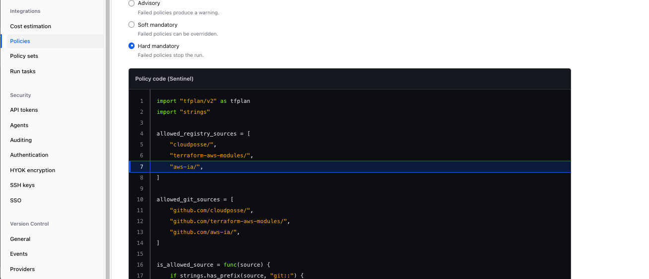 For teams using HCP Terraform, you can use the Sentinel policy referenced here. Keep in mind that this uses a allowed_$$_sources input inside the policy itself. There may be a better way to define the list of sources and my sentinel kungfu is not that strong , yet. I should probably ask the sentinel team if there is a way to manage the sources.
